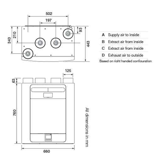 • Ducting: 4 x Ø125mm spigots