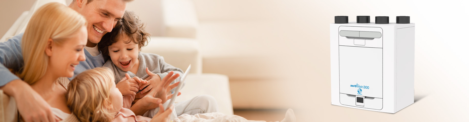 The Aerofresh 300 heat recovery ventilation unit is designed to create a healthier, more comfortable indoor environment in small to large homes. This efficient and high-performance ventilation system provides continuous fresh, filtered air with stable humidity control.